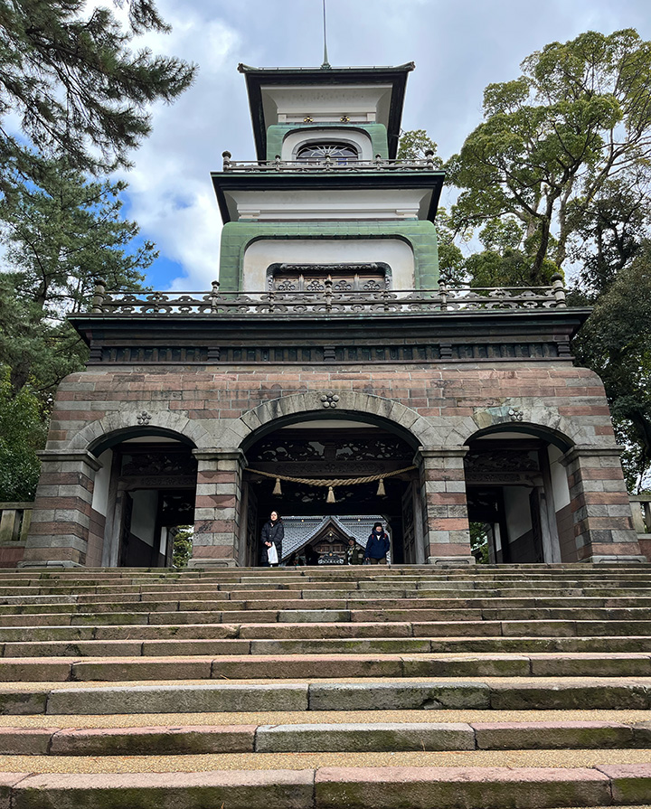 尾山神社には、ステンドグラスが用いられた和洋折衷の神門があり、昨年はバスの中からチラッと見ただけでしたが、その印象的な佇まいに記憶に深く残っており、次回訪れた際には必ず立ち寄ろうと考えていました。